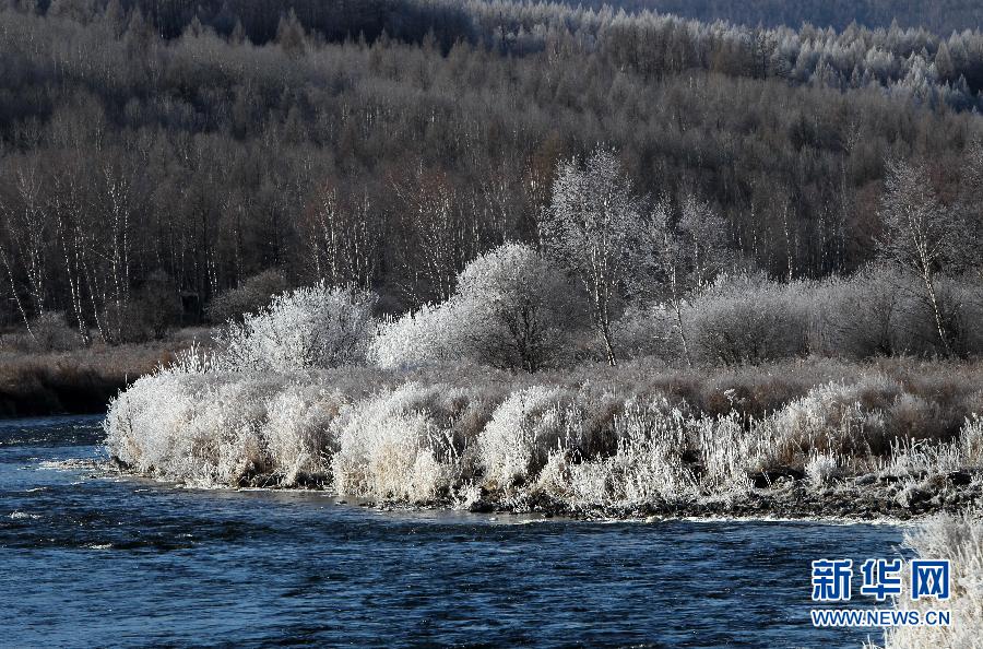 Photo taken on October 13, 2014 shows rime scenery in Arxan forests in Dahinggan Mountains, north China's Inner Mongolia Autonomous Region. (Photo/Xinhua News Agency)