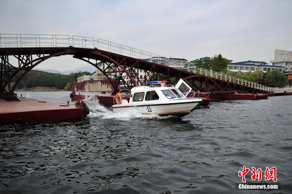 The first water police' detachment is spotted in the Yanxi Lake in the northeastern suburban Huairou District of Beijing. They are preparing for the 2014 APEC Economic Leaders' Meeting, which will be held in November 2014. The number of police boats will be increased to two and the number of water police detachment will increase from 4 to 12. A police station has also been put up to deal with emergencies at Yanxi Lake. Beijing police will launch an eight-week inspection on anti-terror precautionary work to guarantee security for the meeting. (China News Service/Jin Shuo)