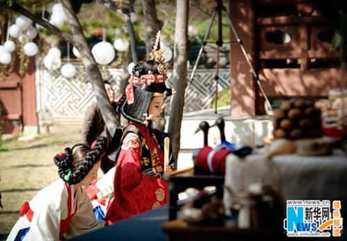 | Korean actress Chae Rim and her husband Gao Ziqi hold traditional wedding ceremony in Seoul, Korea on Oct. 23, 2014.(Photo Source:xinhuanet/ent) |