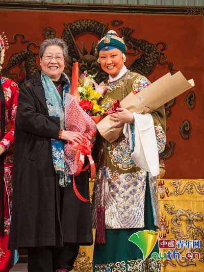 Zhang Lan and her teacher Wang Jinghua, who is a famous singer in National Peking Opera Academy. (Photo/Youth.cn)
