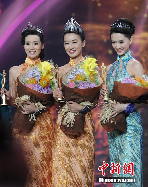 The Final of Miss Chinese Cosmos Pageant 2014 is held in Zhuhai, Guangdong, Oct. 25, 2014. Contestant No. 6 Liu Zhongqing, 26, a graduate student from France won the championship of the pageant. He Wenqian from Shanghai won the second place, and Yang Xue of Jiangsu ranked the third. (Chinanews/Chen Jing)