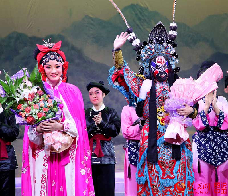 | The “teeth playing” is a unique acrobatic skill of Pingdiao opera in Ninghai, east China’s Zhejiang Province. It enjoys equal popularity as the “changing face” of Sichuan opera. The actor holds four or eight or even ten tusks in mouth and plays them in and out. The actor can still sing, speak, act and acrobatic fight with the tusks in mouth. (Photo source: people.cn) |
