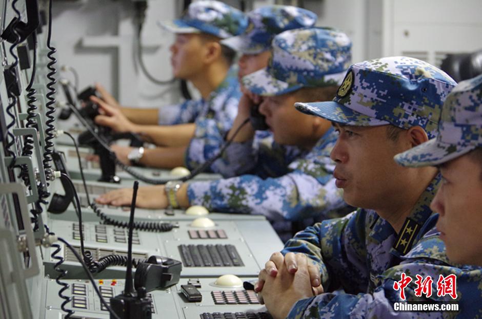 | Dock landing ship “Changbaishan” of the 18th escort taskforce of the Chinese Navy successfully conduct an open sea attack and defense drill in the Gulf of Aden on Nov. 17, 2014. (Chinanews/Yan Bin) |