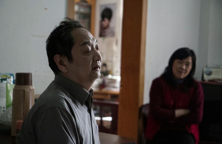Zhu’s wife Zhang Lanfang sits beside him and listens to Zhu talking. (Photo/cnhubei.com)