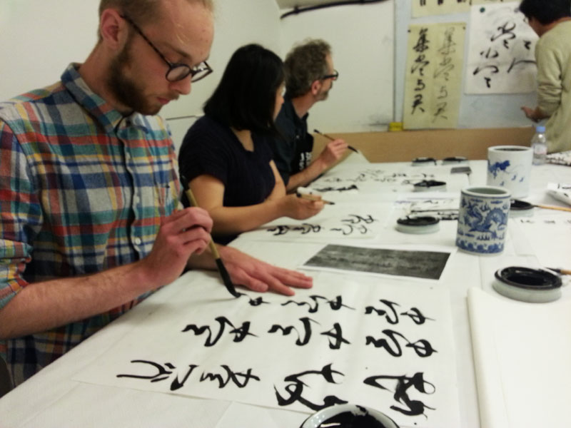 | Foreign students studying Chinese calligraphy during a weekend class at the Guanghwa Bookshop in London's China Town .[Photo: Courtesy of Guanghwa Bookshop] |
