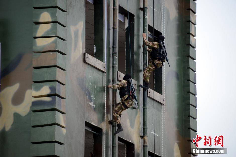 Recently, the armed police detachment in Deyang, southwest China’s Sichuan province, conducts an anti-terror drill to improve their combat capability. Soldiers successfully completed all the training subjects, winning warm applause from the audience. (Liu Yangkuan/Chinanews)