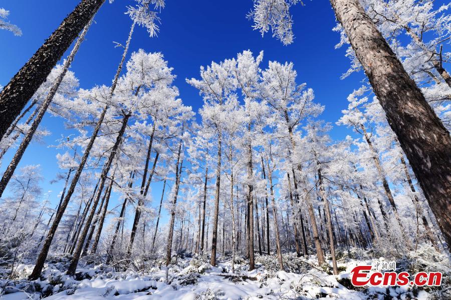 Trees are covered by rime at the Moerdaoga National Forest Park in the Greater Khingan Range, North China’s Inner Mongolia autonomous region. Moerdaoga means "to go to battle on horseback" in the Mongolian language. The forest park, the largest in China, features mountains, virgin forests, rivers, islands, folk villages, and has plenty of natural wonders to enjoy, making it an ideal resort during all four seasons. [Photo: China News Service/Zhang Fu]
