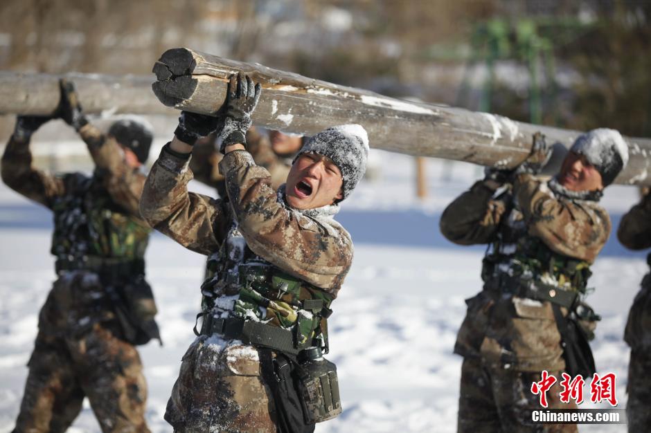 On Dec. 24, soldiers of a regiment in Heihe, north China’s Heilongjiang province conduct a drill at minus 31 degrees Celsius to build up their combat capability and willpower in harsh environment. (CNS/Wei Jianshun)