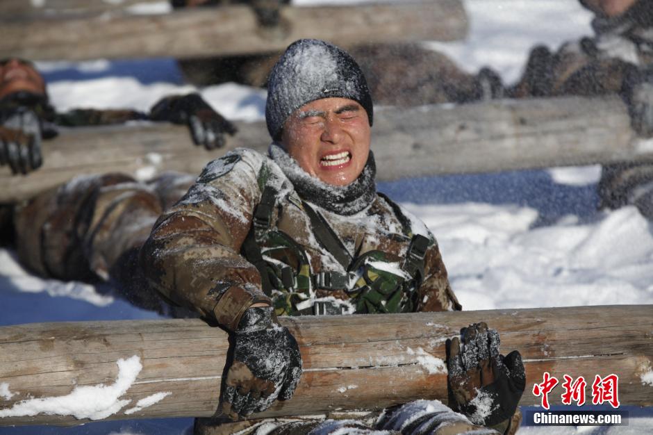 On Dec. 24, soldiers of a regiment in Heihe, north China’s Heilongjiang province conduct a drill at minus 31 degrees Celsius to build up their combat capability and willpower in harsh environment. (CNS/Wei Jianshun)