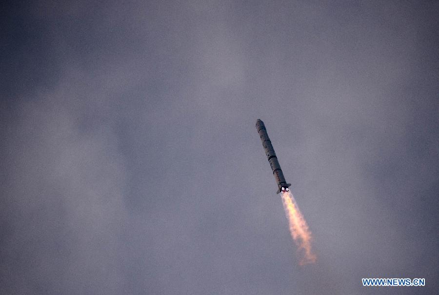 A Long March 3A rocket carrying meteorological satellite Fengyun-II 08 blasts off from the launching pad at Xichang Satellite Launch Center, southwest China's Sichuan Province, Dec. 31, 2014. China successfully launched Fengyun-II 08, its meteorological satellite, at 9:02 a.m. on Wednesday. The satellite will collect meteorological, maritime and hydrological data; and transmit information that will be used for weather forecasting and environment monitoring. (Xinhua/Liu Chan)
