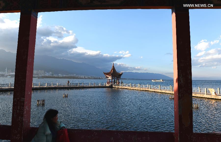 Photo taken on Jan. 4, 2015 shows a view of the Erhai Lake in Dali Bai Autonomous Prefecture, southwest China's Yunnan Province. The Erhai Lake, covering 253 square kilometers and being the second largest fresh water lake in Yunnan Province, is named as the "mother lake" by local people. Two major outbreaks of blue algae in the Erhai Lake between 1996 and 2003 triggered problems in drinking water supply. Thanks to the efforts of local government in controlling pollution in the famous plateau lake and improving the local environment, the water quality of the lake has been improved. (Xinhua/Lin Yiguang)