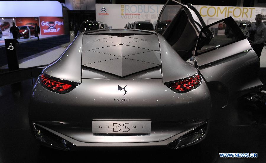 A Citroen DS Divine concept car is displayed on the press day at the Brussels Motor Show in Brussels, Belgium, Jan. 15, 2015. The Motor show will run from Jan. 16 to 25. (Xinhua/Ye Pingfan)