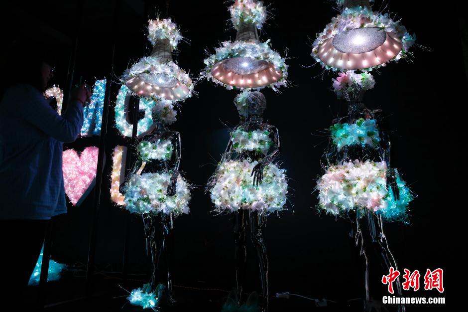 Eye-catching fiber-optic wedding dress appears in Shanghai (4)