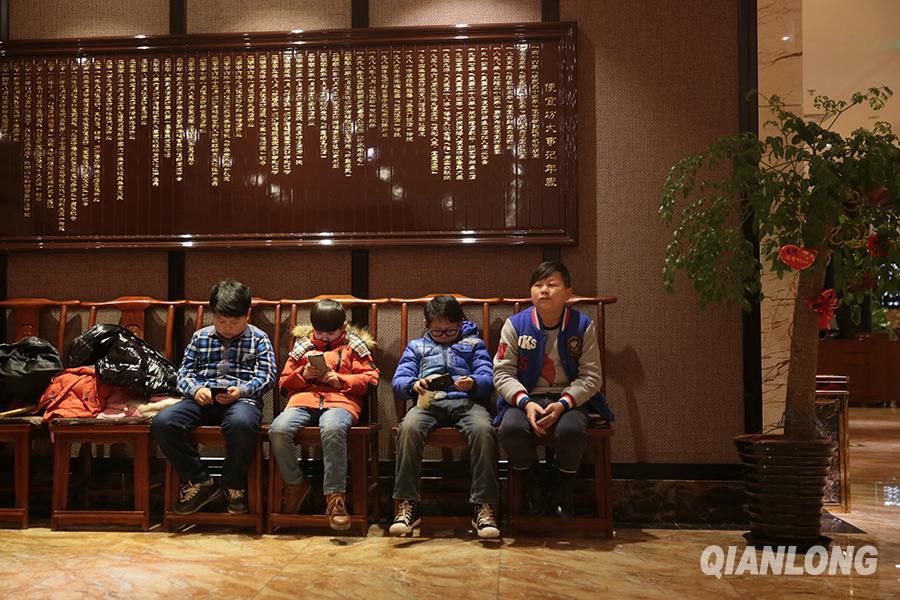 Four actors from the troupe rest at the scene, Jan. 8, 2015. (Qianlong/Li He)