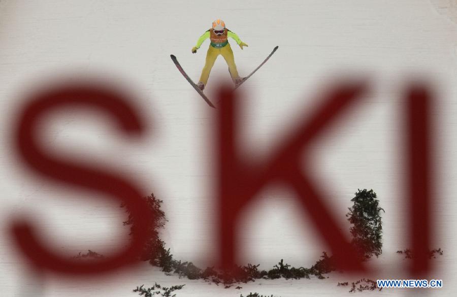Li Xueyao of China competes during the ski jumping ladies'team final at 2015 Winter Universiade in Strbske Pleso, Slovakia, Jan. 29, 2015. China took the 4th place with 283.4 points. (Xinhua/Fei Maohua)