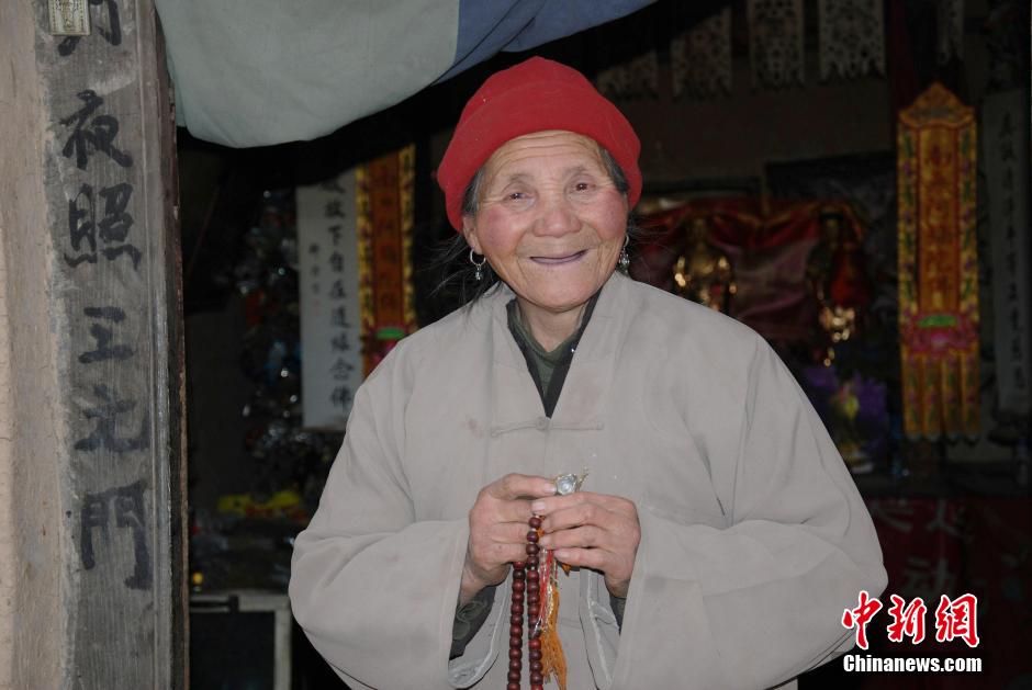 Wang Zhixia built a small temple in the hillside of Zhongnan Mountain. (CNS/Li Simo)