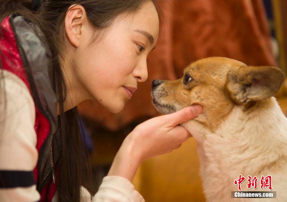 Li plays with her dog, which has accompanied her for 11 years. (CNS/Zhang Yun)