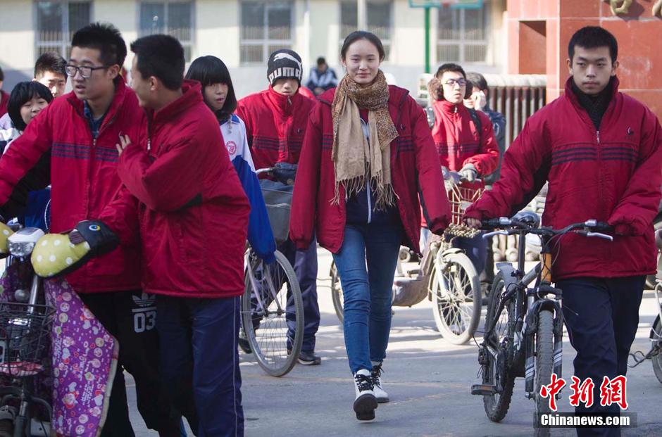 Li, in uniform, goes out of school. (CNS/Zhang Yun)