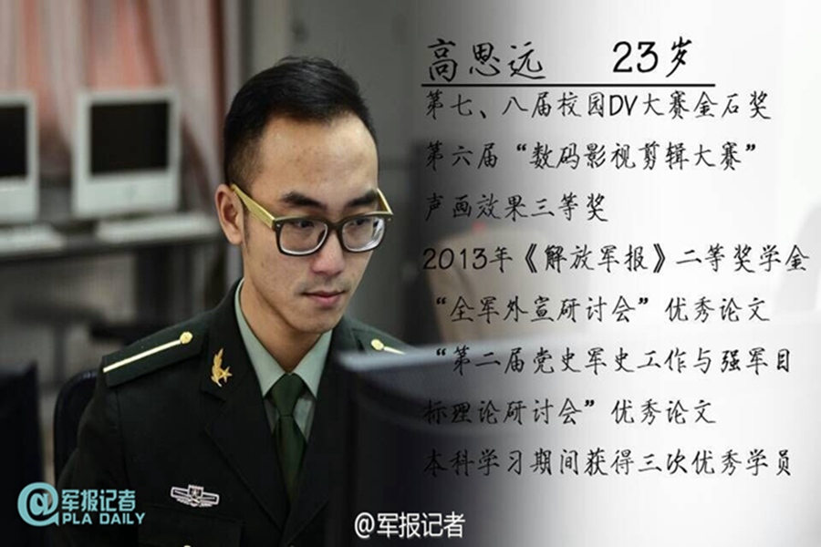 Gao Siyuan, 23, wins the scholarship of PLA Daily in 2013. (Photo/PLA Daily)