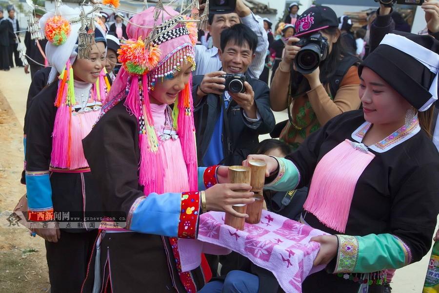 In a remote village Baichao of Guixi, southwestern China’s Guangxi Zhuang autonomous region, a traditional wedding ceremony of Liandian Yao was held. Liandian Yao is a branch of Yao nationality, which has unique wedding customs. New couples wear beautiful wedding dresses on the wedding day. In the past, marriage of Landian Yao people was arranged by parents. But now young people can decide who they want marry. (gxnews.com.cn/Xiao Faling)