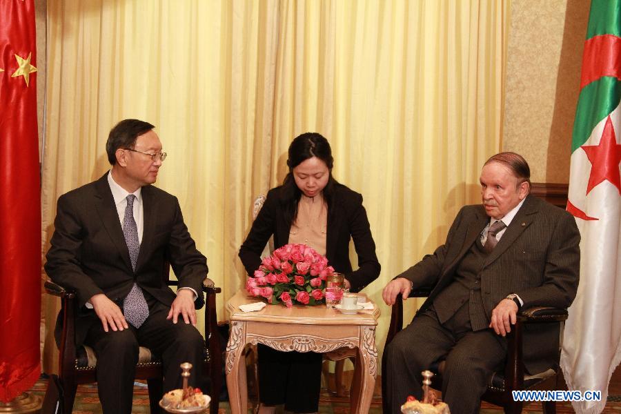 Yang also met with Algerian President Abdelaziz Bouteflika on the day, both pledging efforts for closer ties between the two countries.