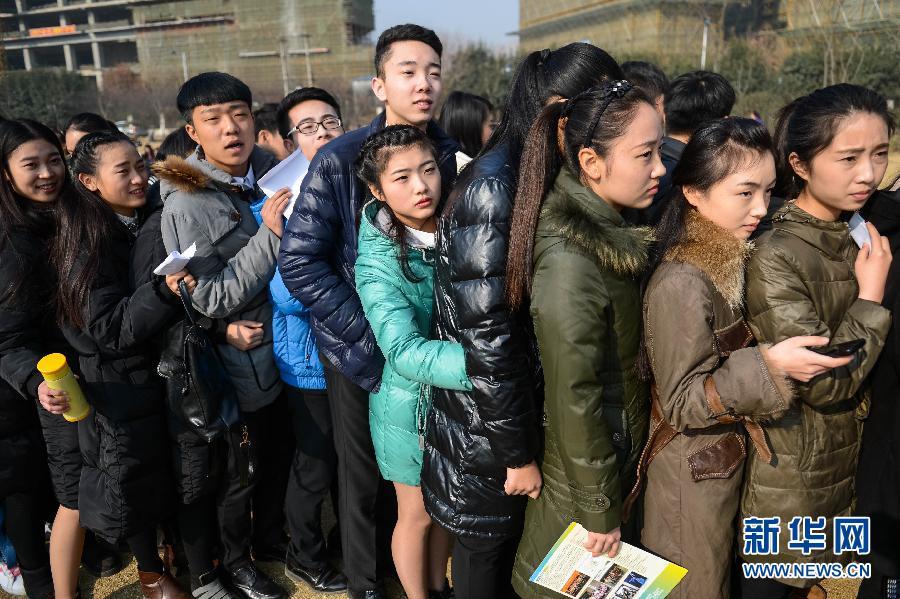 Candidate for art majors wait for taking an exam at Artistic Vocational College of Anhui, Jan. 28, 2015. The exam will last until Feb. 8. (Xinhua Photo)