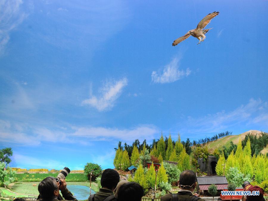 Visitors take pictures of a diorama to try out the latest products at the CP+ Camera and Photo Imaging Show in Yokohama, Japan, Feb. 12, 2015. The four-day exhibition was opened on Feb. 12. (Xinhua/Stringer)