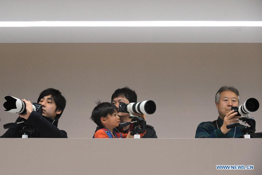 | Visitors try out the Sony latest products at the CP+ Camera and Photo Imaging Show in Yokohama, Japan, Feb. 12, 2015. The four-day exhibition was opened on Feb. 12. (Xinhua/Stringer) |