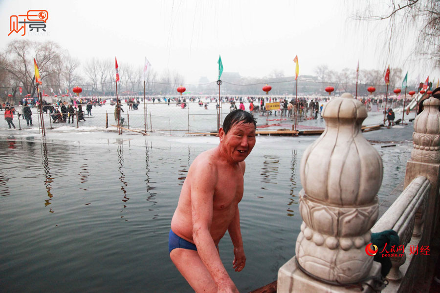 At 4 p.m., a swimmer comes out of the Shichahai Lake. A group of old men swim in the lake every day. (PDO/Jia Xingpeng