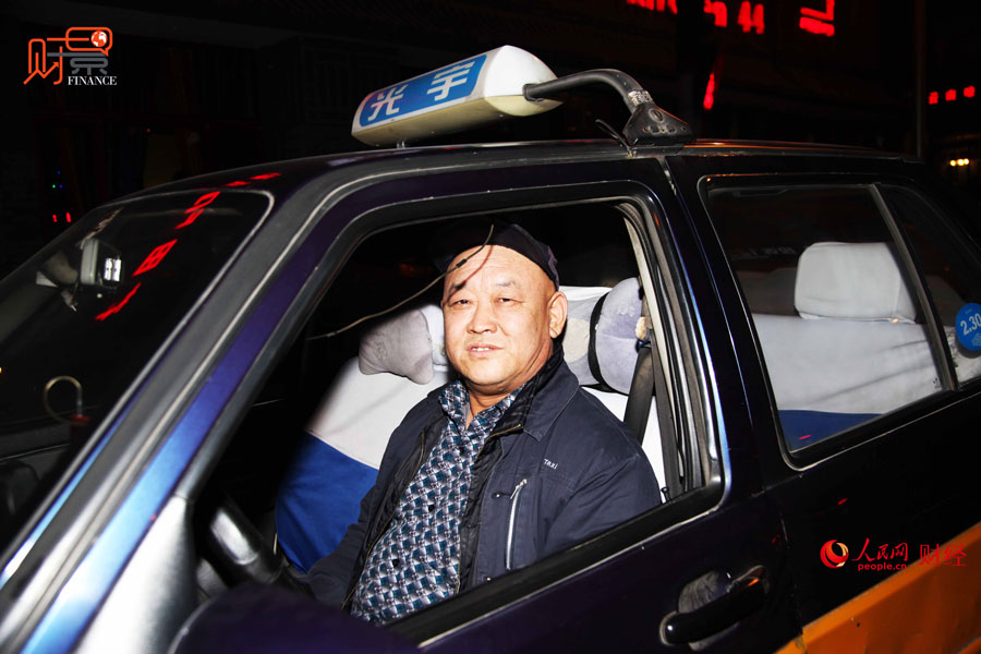 | At 11 p.m., a taxi driver just finishes the work in Beigao. He said he worked for 15 hours a day. (PDO/Jia Xingpeng) |