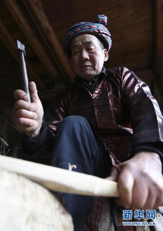 On Feb. 9, Liang Bingguang makes a lusheng. (Xinhua/Long Tao)