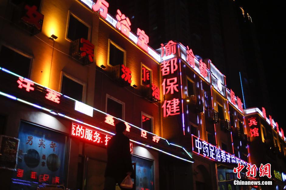 Photo shows the street scenery of Yanjiao at 9:35 p.m. There were few people in the street, but the business of massage parlors was in full swing. (CNS/Wang Jun)