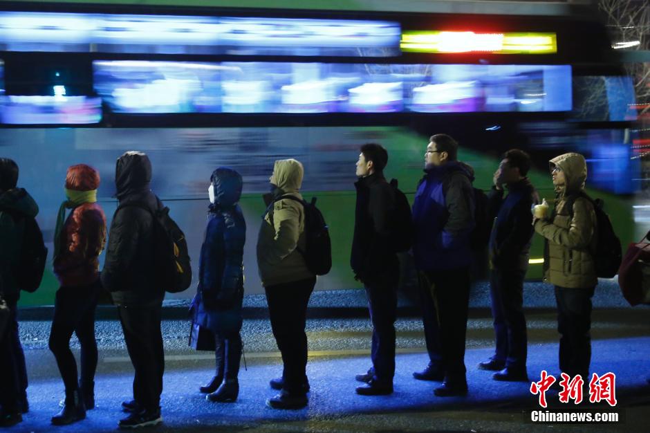 At 5:30 a.m. on Feb. 2, people in Yanjiao line up to wait for the bus 814 to go to Beijing. (CNS/Wang Jun)