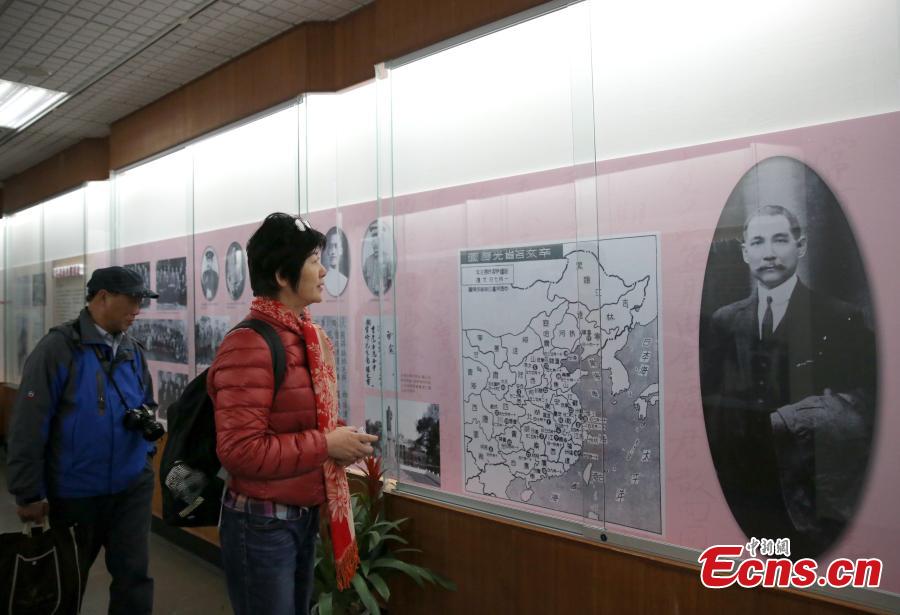 | Visitors look at displays during an exhibition to commemorate the 90th anniversary of the death of Dr. Sun Yat-sen in Taipei, March 9, 15. The exhibition includes three parts: Dr. Sun's Demise and Beijing Tour, Dr. Sun and Mrs. Rosamond Song, and Dr. Sun's Life History. Dr. Sun was born in 1866 and died in 1925. He is known to the Chinese as a "great revolutionary and statesman" for his leading role during the 1911 Revolution, which overthrew the Qing Dynasty (1644-1911) and put an end to more than 2,000 years of feudal rule in China. (Photo: China News Service/Chen Xiaoyuan) |