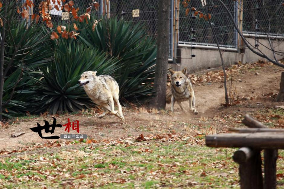 Two wolves run away when they see strangers entering their domain. (www.cnwest.com)