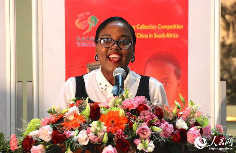 Boreadi Maleka speaks on behalf of the 17 winners. (People’s Daily Online/Zhang Jiexian)