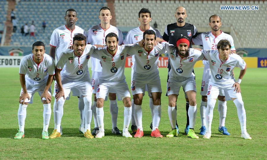| Players of Kuwait's Al Kuwait SC line up ahead of the Group D match of AFC CUP 2015 against Syria's Al Jaish in Kuwait City, Kuwait, on March 17, 2015. The match ended with a 0-0 draw. (Xinhua/Noufal Ibrahim) |