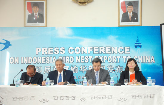 | A press conference on Indonesian bird's nest exports to China, held at the Indonesian Embassy in Beijing, March 12, 2015. (People's Daily Online/Du Mingming) |