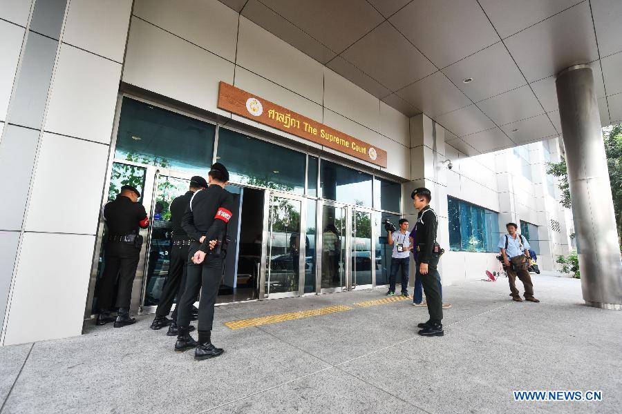 Soldiers stand guard outside the Supreme Court of Thailand in Bangkok March 19, 2015. The Thai Supreme Court's Criminal Division for Holders of Political Office decided on Thursday to accept a criminal case against Former Prime Minister Yingluck Shinawatra for alleged malfeasance in a controversial rice-pledging scheme. (Xinhua/Li Mangmang)