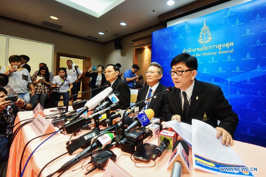 | The Office of the Attorney-General of Thailand holds a press conference about the Supreme Court's decision to accept a criminal charge against Former Prime Minister Yingluck Shinawatra in Bangkok, Thailand, March 19, 2015. The Thai Supreme Court's Criminal Division for Holders of Political Office decided on Thursday to accept a criminal case against Former Prime Minister Yingluck Shinawatra for alleged malfeasance in a controversial rice-pledging scheme. (Xinhua/Li Mangmang) |