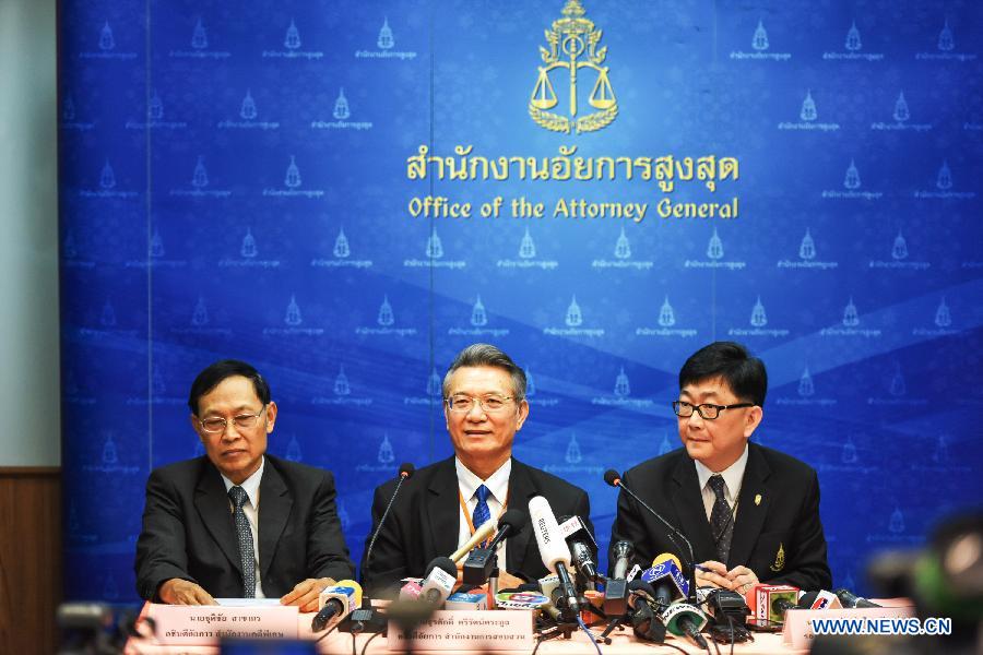 The Office of the Attorney-General of Thailand holds a press conference about the Supreme Court's decision to accept a criminal charge against Former Prime Minister Yingluck Shinawatra in Bangkok, Thailand, March 19, 2015. The Thai Supreme Court's Criminal Division for Holders of Political Office decided on Thursday to accept a criminal case against Former Prime Minister Yingluck Shinawatra for alleged malfeasance in a controversial rice-pledging scheme. (Xinhua/Li Mangmang)