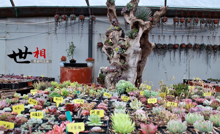 Wang Qi is deeply attached to the succulent plants in the flower shop. (www.cnwest.com/Zhang Kan)