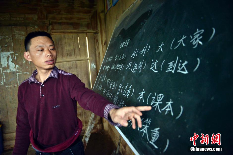 Wu Lang teaches the students of grade two in Shangguili primary school. (CNS/Wang Bingzhen)