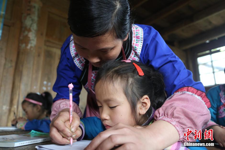 Yang Shengyun, Wu Lang's wife, teaches the preschoolers in class. (CNS/Yang Chengli)