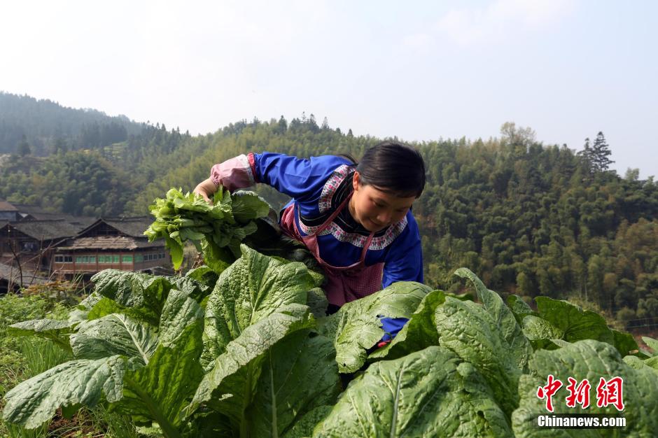 Yang Shengyun, Wu Lang's wife, picks vegetables and prepares to cook lunch for students. (CNS/Yang Chengli)
