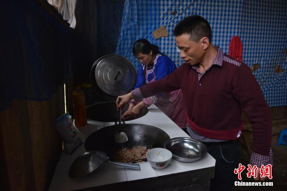 Wu Lang and his wife cook lunch for students. (CNS/Wang Bingzhen)