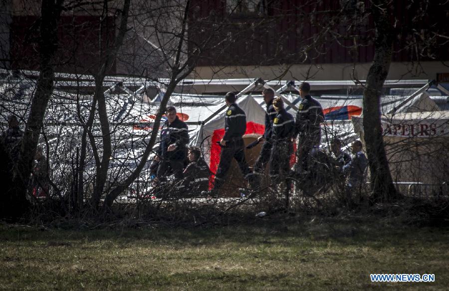 | Tents are set up to serve the relatives of the Germanwings plane crash victims, on March 26, 2015 in southern town of Seyne in France. Volunteers of Seyne prepared to receive the relatives of the Germanwings plane crash victims by providing accommodation, medic services and psychological counseling. (Xinhua/Chen Xiaowei) |