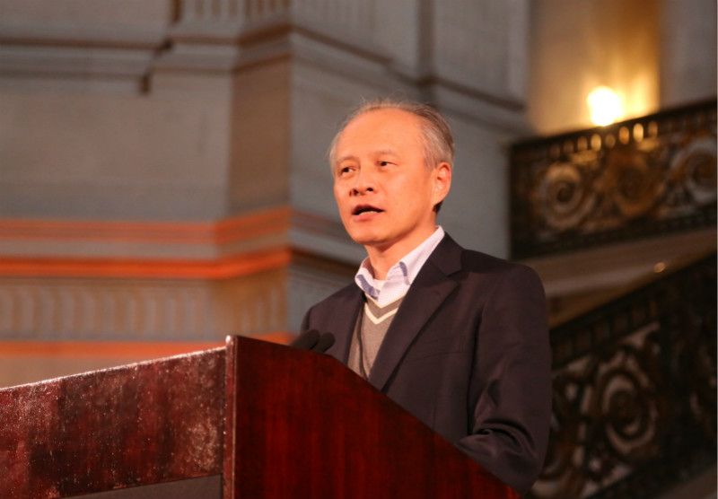 San Francisco, March 30 (People's Daily Online)----Cui Tiankai, China's ambassador to the United States, among other 35 foreign ambassadors travelled to San Francisco for U.S. Department of State's "Experience America" program on Monday. As the representative of the ambassadors in the United States, Cui delivered a speech at the reception held in San Francisco City Hall.