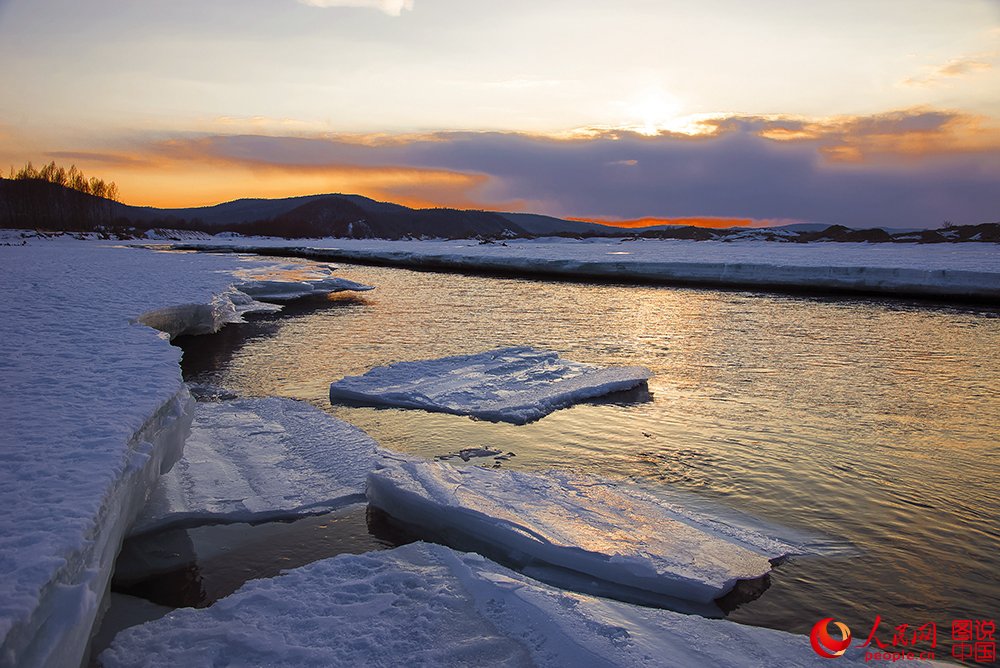 When spring is swiping over most regions of China in early April, people in Jiagedaqi, the Great Khingan still cannot see any green color or blossom. However, they can feel the touch of spring from the melting ice, especially the breathtaking scenery of the ice river. (People's Daily Online/Xu Haibo)