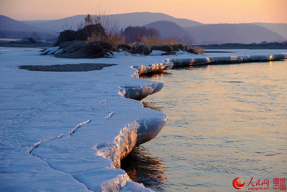When spring is swiping over most regions of China in early April, people in Jiagedaqi, the Great Khingan still cannot see any green color or blossom. However, they can feel the touch of spring from the melting ice, especially the breathtaking scenery of the ice river. (People's Daily Online/Xu Haibo)